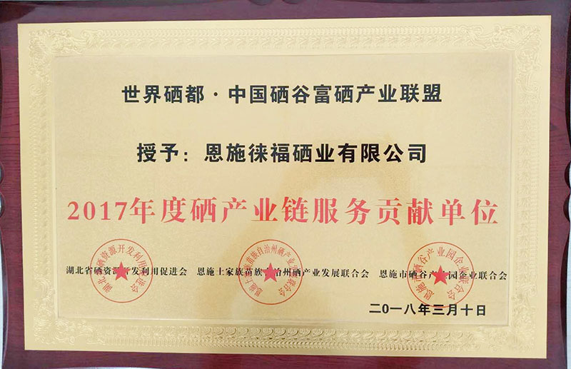 证书内容:硒产业链服务贡献单位