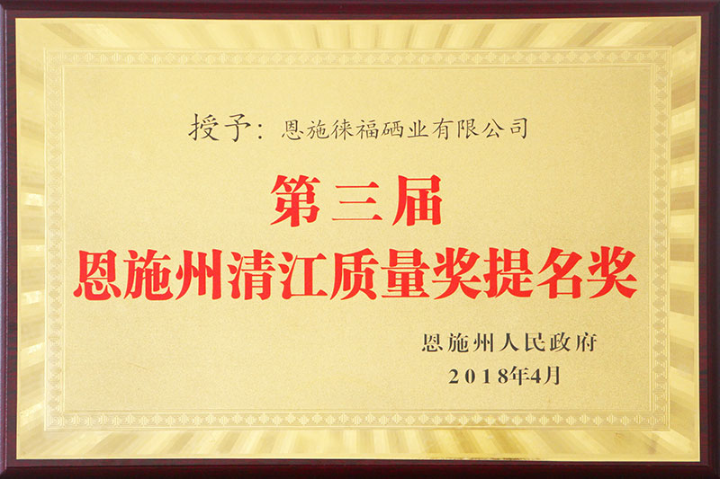 证书内容:恩施州清江质量奖提名奖
