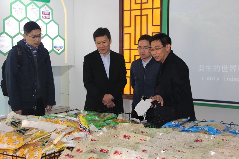 徕福硒业黄毅华董事长、运营总监杨爱明陪同黄福宁副州长、州金融办张绪华副主任、中粮集团公司领导(信托公司总经理助理张勇、农业金融部经理成伟等)参观富硒产业联盟总部(徕福硒业科技大楼1楼)