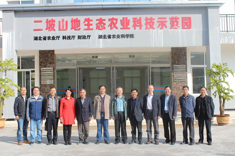 黄毅华董事长、陈磊夫博士等一行与湖北省科技厅科技计划项目验收专家组成员在徕福硒业二坡专家大院合影