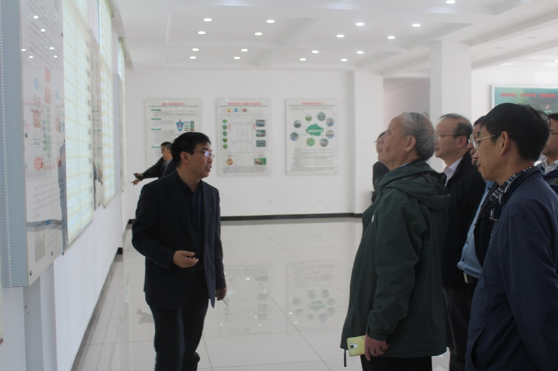 黄毅华董事长在徕福硒业二坡专家大院一楼展厅为项目验收专家组展示科技开发成果