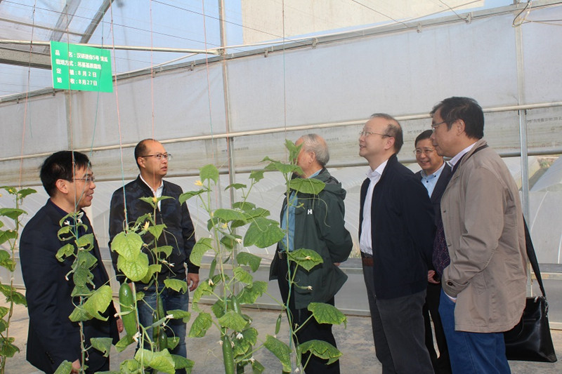 黄毅华董事长与项目验收专家组在徕福硒业二坡农业科技示范基地