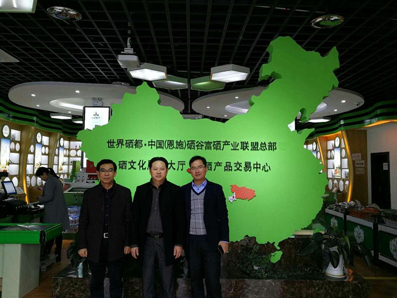 自左向右:徕福硒业黄毅华董事长、湖北民院园艺系陈耀兵教授、徕福硒业南占东总工程师