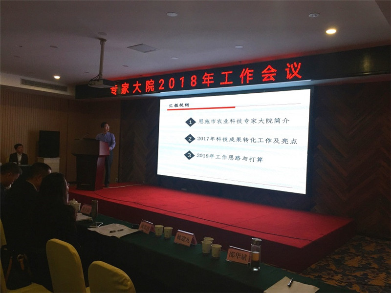 2018年4月27日,专家大院2018年度工作会议在枝江召开,省农科院邵华斌副院长、枝江市姚迎九副市长主持此次会议。恩施市农业局蔬菜办主任马刚、徕福硒业南占东高级工程师代表恩施市专家大院参加本次会议。
