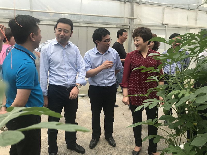参观二坡农业科技示范园瓜果蔬菜健康栽培区(右一:涂元玲部长;右二:黄毅华董事长)
