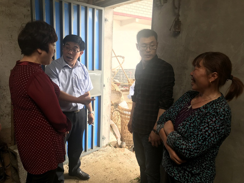 深入调研走访二坡村贫困户对口帮扶情况(左一:涂元玲部长;左二:黄毅华董事长)