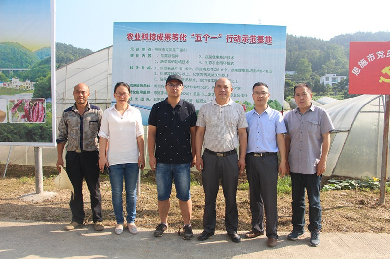 2018年6月6日,湖北省农科院经作所陈磊夫博士、袁伟玲博士一行莅临恩施市专家大院及恩施徕福硒业有限公司二坡山地生态农业科技示范园,调研、考察了园区基地富硒瓜果蔬菜及特色药食同源植物的生产示范情况,如新品种、新技术的引进,栽培管理情况,并对病虫害防治与土肥使用等技术环节进行指导。徕福硒业副总经理刘宁、基地负责人李荣、技术总监南占东等一行陪同。