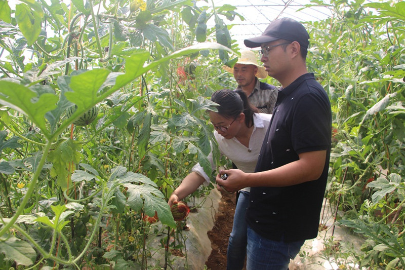 陈磊夫博士、袁伟玲博士作为常年驻点服务恩施市专家大院的岗位专家和湖北省农科院蔬菜富硒栽培课题组骨干成员,对园区引进的新品种京粉一号番茄、金宝八号西瓜、奇迹一号西瓜、超甜脆爽甜瓜及黄瓜等的吊蔓基质栽培技术与管理进行了专业指导,提出了存在的问题与解决方案,为园区蔬菜瓜果健康栽培和优质高产提供了有力的技术支持。同时双方计划在园区继续开展项目对接与实施,进行瓜果蔬菜富硒营养与品质控制试验研究与示范,以期推动恩施富硒瓜果蔬菜栽培技术集成示范与推广。