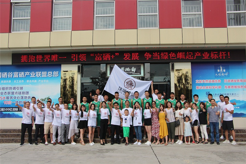 2018年7月15日上午,在徕福硒业总部大楼广场之上,黄毅华董事长亲自为徕福硒业俱乐部篮球队授旗,并代表徕福硒业全体员工向英姿飒爽、斗志昂扬的篮球队员们表示热烈的欢迎和亲切的问候,预祝徕福硒业篮球队在本届ESL联赛(恩施业余篮球联赛)赛事上勇创佳绩。最后,黄毅华董事长一行携徕福硒业员工与篮球队员在总部大楼、专家大院及二坡山地生态农业科技示范园区参观、合影。