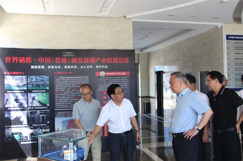 2018年8月28日,湖北省政协主席徐立全、秘书长翟天山等领导一行,在恩施州政协党组副书记、副主席肖谏诚的陪同下,莅临位于中国硒谷核心区的徕福硒业总部考察、调研。