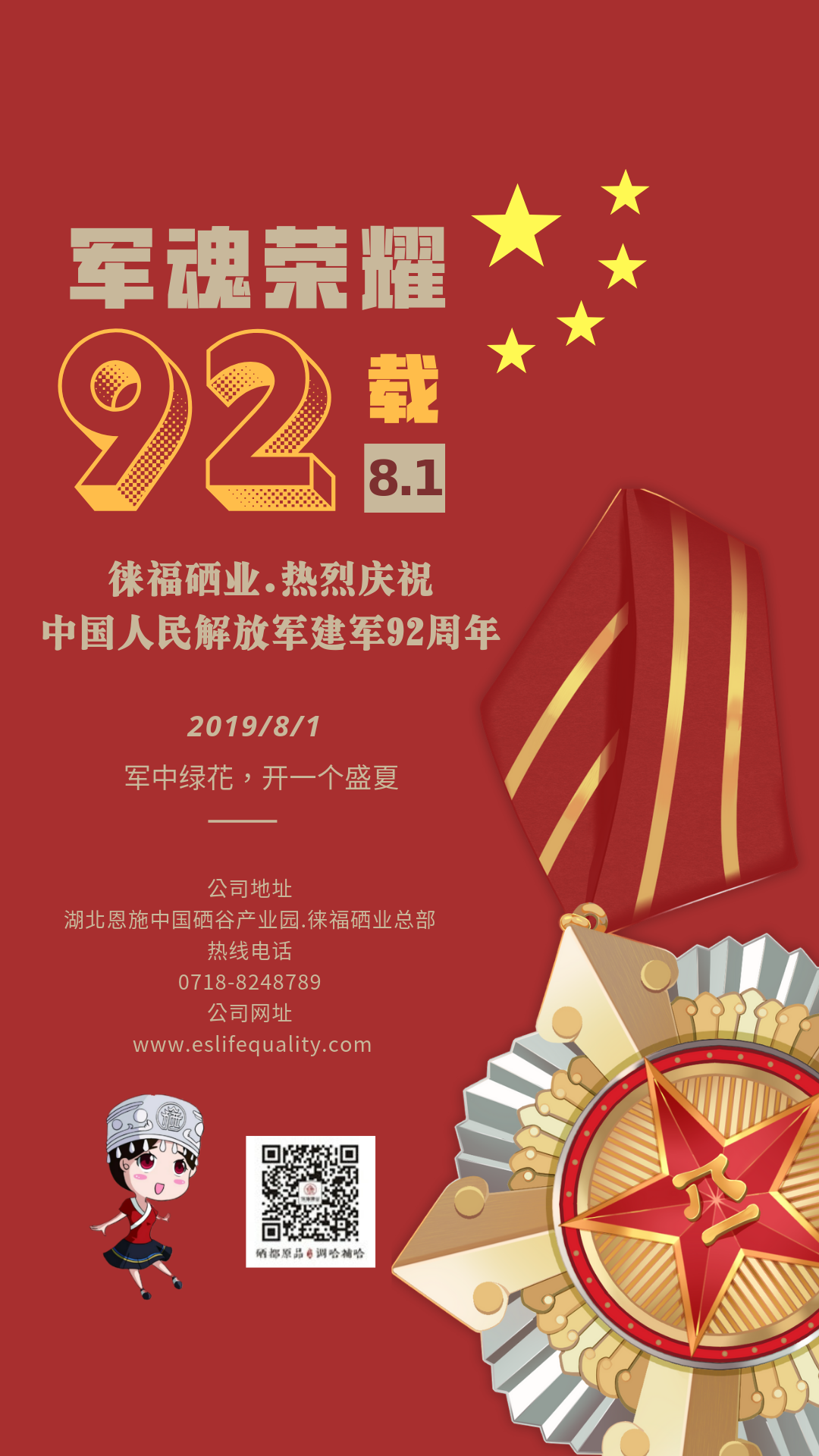 恩施徕福硒业热烈祝贺中国人民解放军建军92周年。