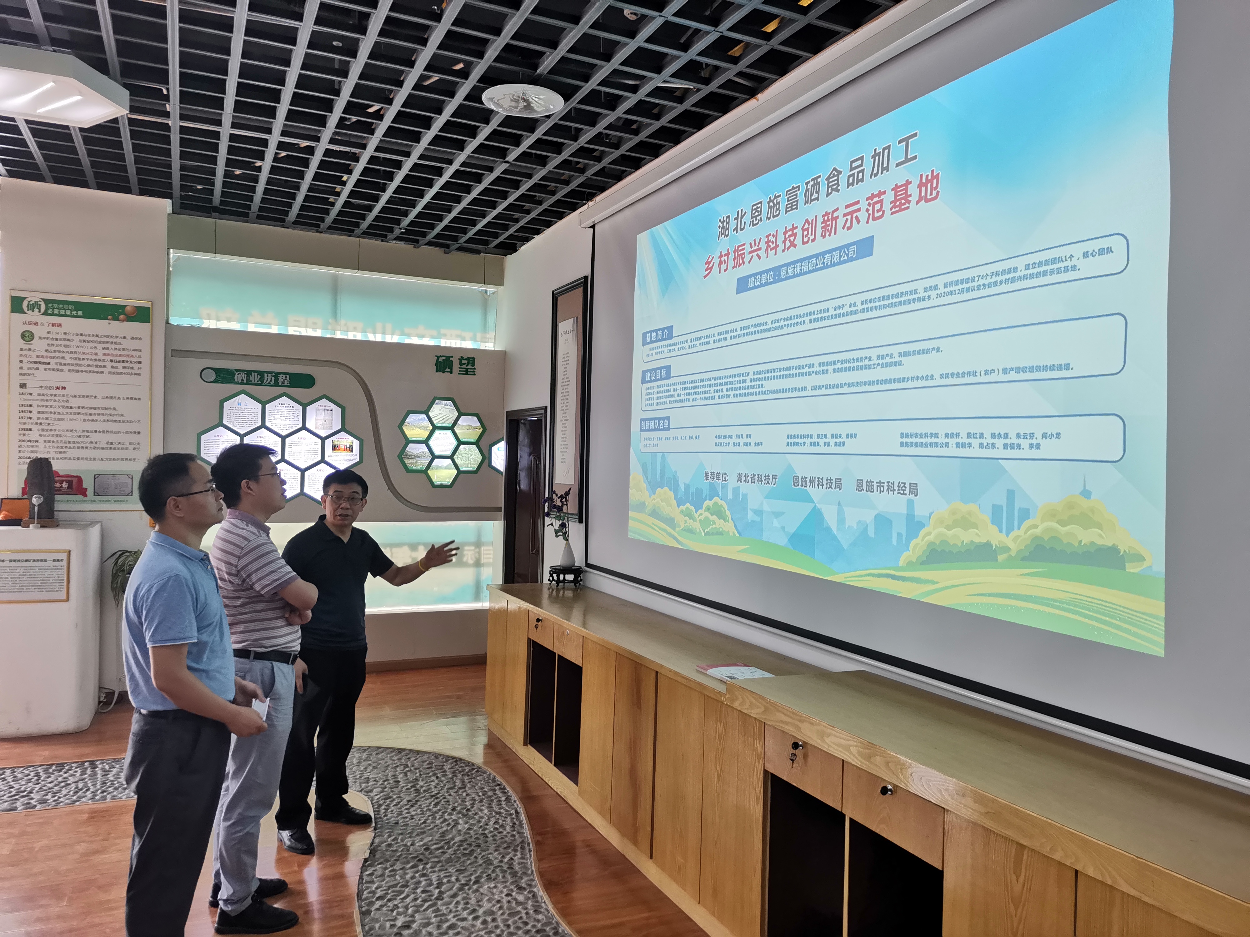 最后,参观考察了徕福硒业生产车间、硒产品陈列厅、直播带货间、专家大院及二坡富硒农业科技示范园区。